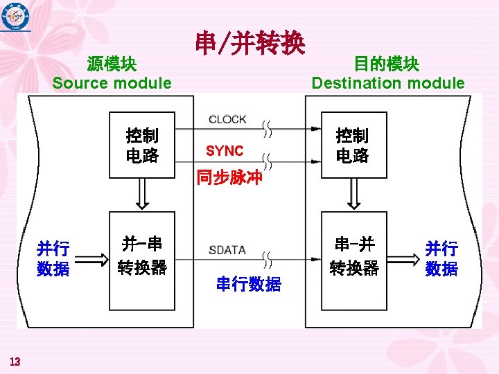 CLOCK +5 V CLK CLR LD ’ 163 ENP ENT A QA B QB C QC D QD RCO 并串转换 CLOCK 计 位 数 数 低 位 74 x 166 RESET_L CLK 并行数据 CLR LD ’ 163 ENP ENT 计 A QA 时 数 B QB 隙 高 C QC 数 D QD 位 RCO 15 D 7 D 6 D 5 D 4 D 3 D 2 D 1 D 0 CLKINH SH/LD CLR SER A B C D E F G H QH 到 目 标 SDATA SYNC