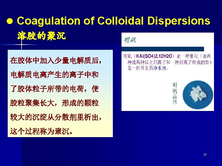 Several methods of bringing about the coagulation The most effective way of coagulating colloidal dispersions of the sol is by adding an electrolyte. n The mixing of two colloidal dispersions whose particles are oppositely charged causes both to coagulate. n n In many cases, heating is also a method of bringing about the coagulation of colloidal dispersions. 14