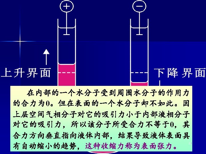 Water dropping from a tap Can you think of another? surface tension 表面张力 界面 表面 19