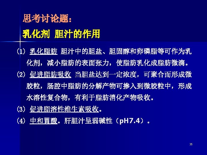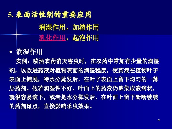 water oil Oil-inner phase (dispersed) Water-outside phase (medium) Oil-outside phase (medium) (a) Oil in water (O/W type) (b) water in oil (W/O type) Type of emulsion 乳状液在 业、农业、医药和日常生活中都有极广泛 的应用。 牛奶、冰激凌、雪花膏、橡胶乳汁、原油乳 状液等均属此种分散体系。 34