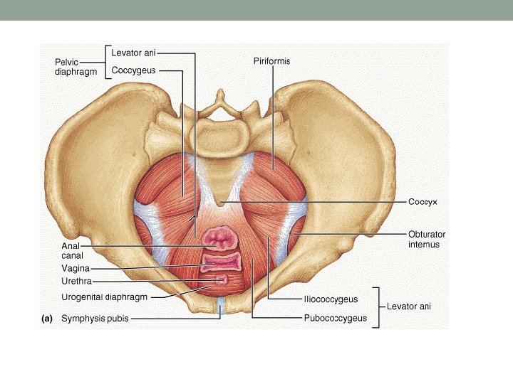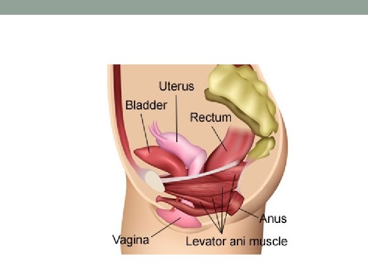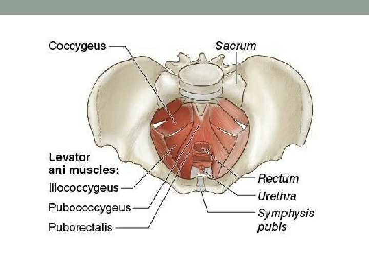 Function of levator muscles • 1. maintain constant tone, except during voiding defecation • 2. have the ability to contract quickly at the time of acute stress such as cough and sneeze • 3. distended considerably during delivery