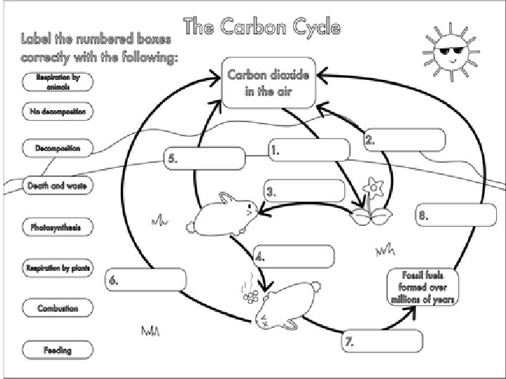 Figure 55. 14 b CO 2 in atmosphere Photosynthesis Photo- Cellular synthesis respiration Burning of fossil fuels and wood Phytoplankton Consumers Decomposition