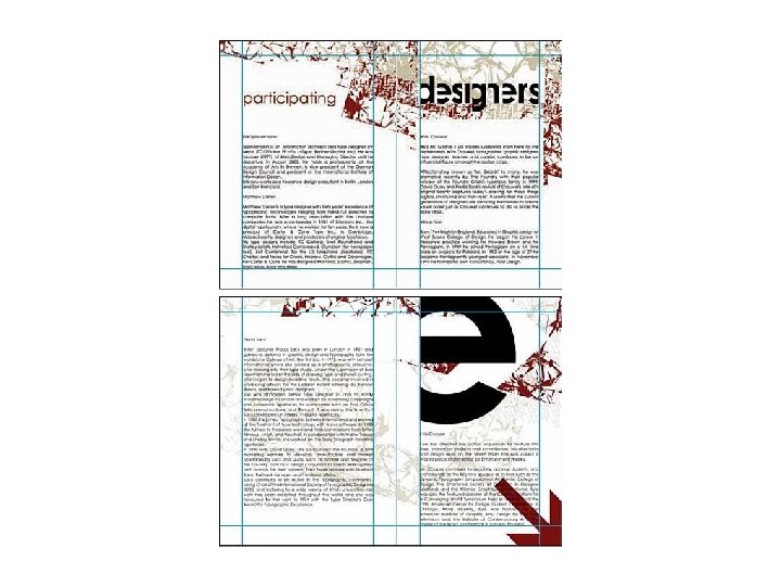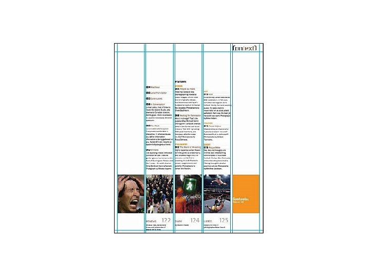 The Purpose of a grid: - The grid helps arranging text, photographs and diagrams in conformity with objective and functional criteria - Order lends credibility and induces confidence - Information presented clear and logically will be read more quickly and better understood/retained