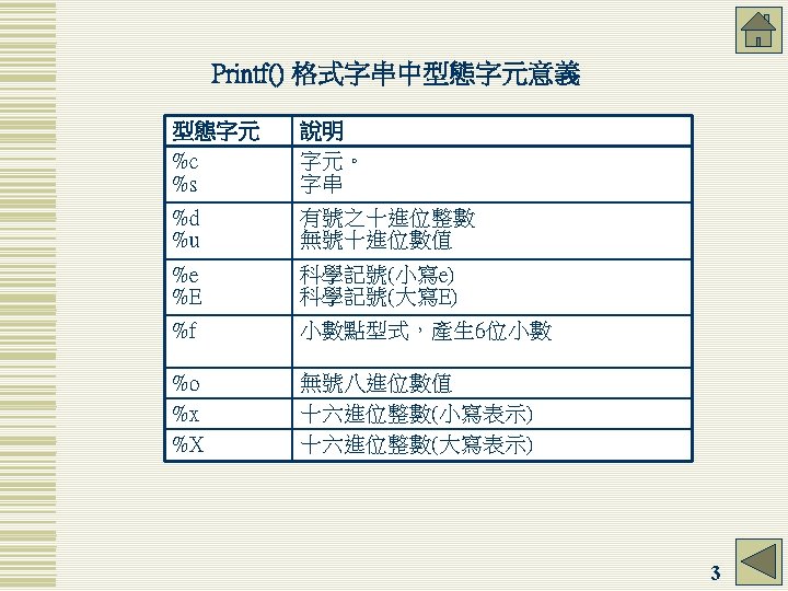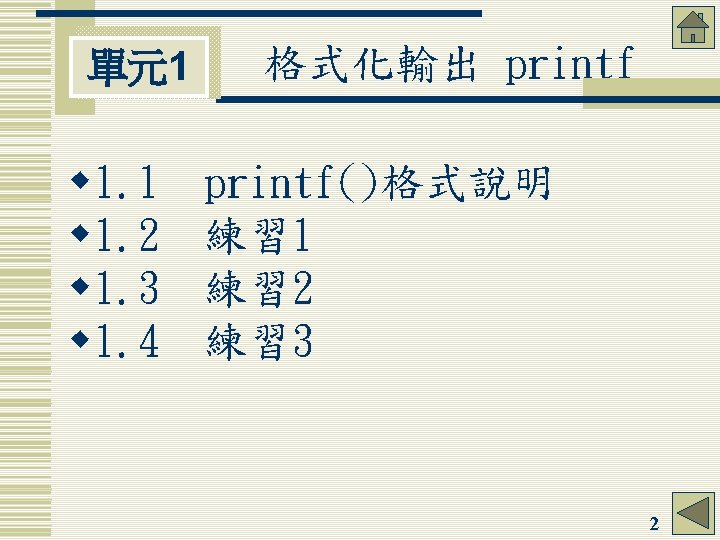 1 1 12 includestdio h int main int Slides: 14 Download presentation 練習 1 -1: 程式解答(1/2) #include<stdio. h> int main() { int pos = 23; int neg = -456; printf("練習 1 -1 學號: xxxx 姓名: xxxxnn"); printf("|123456789|n"); printf("|%d|n", pos); printf("|%2 d|n", pos); printf("|%9 d|n", pos); printf("|%+09 d|n", pos); printf("|%+-9 d|n", pos); printf("|%-9 d|n", pos); 7 練習 1 -1: 程式解答(2/2) printf("|%d|n", neg); printf("|%2 d|n", neg); printf("|%9 d|n", neg); printf("|%09 d|n", neg); printf("|%-9 d|n", neg); system("PAUSE"); return 0; } 8 練習 1 -2: 程式解答(1/2) #include <stdio. h> #include <stdlib. h> int main() { double fl=21. 678; printf(“練習 1 -2 學號: xxxxx 姓名: xxxxnn"); printf("|123456789012345|n"); printf("|%-5. 2 f|n", fl); printf("|%15 f|n", fl); printf("|%-15. 4 f|n", fl); 10 練習 1 -2: 程式解答(2/2) printf("|%-15. 2 f|n", fl); printf("|%+-15 e|n", fl); printf("|%+-15. 3 e|n", fl); system("PAUSE"); return 0; } 11 練習 1 -3: 程式解答(1/2) #include <stdio. h> #include <stdlib. h> int main() { double fl=9. 876; char str[30]="How are you? "; printf(“練習 1 -3 學號: xxxxx 姓名: xxxxxnn"); printf("|123456789012345|n"); printf("|%-5. 2 f|n", fl); printf("|%15. 4 f|n", fl); printf("|%-15. 2 f|n", fl); printf("|%+-15 e|n", fl); printf("|%+-15. 3 e|n", fl); 13 練習 1 -3: 程式解答(2/2) printf("|%s|n", str); printf("|%15 s|n", str); printf("|%-15. 3 s|n", str); system("PAUSE"); return 0; } 14