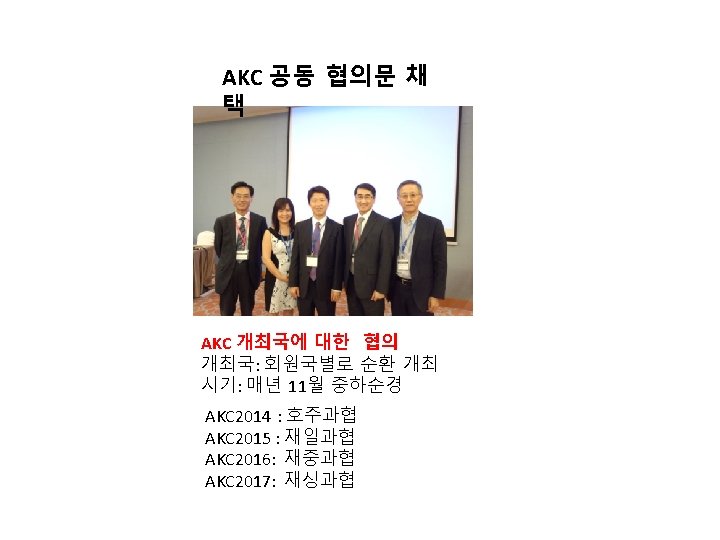 4. AKC 2013 프로그램 • 기조 강연 : 아시아 지역의 저명 과학자들을 초빙, 총 7개의 기조 강연 진행 Benjamin Seet (Executive Director, BMRC, A*STAR, Singapore) Kwang Soo Kim (Professor, Harvard Medical School) Alex Matter (CEO, Experimental Therapeutic Centre, A*STAR, Singapore) Changming Li (Professor and Director Institute for Clean Energy & Advanced Materials, Southwest University) Hawoong Jung (KAIST-Chair Professor, Head, Department of Physics, KAIST) Andrew Wee (Professor and Dean, Faculty of Science, National University of Singapore) Michael Khor (Professor and Director, Research Support Office & Bibliometrics Analysis, Nanyang Technological University) • Scientific Program : 총 4개 Session, 10개 소분과, 89개의 oral presentations과 57개의 poster presentations • Tech Innovation in Biopharma R/D 기술혁신 비지니스 포럼 - 바이오 및 제약산업에 있어서 연구혁신과 창의적 아이디어에 기반한 가시적 연구성과 소개 - 전문가들이 패널로 참석하여 산업의 현재와 미래 전망에 대한 의견 교류 - 한국기업과 해외기업 및 연구소와의 공동 R&D 기회를 마련함