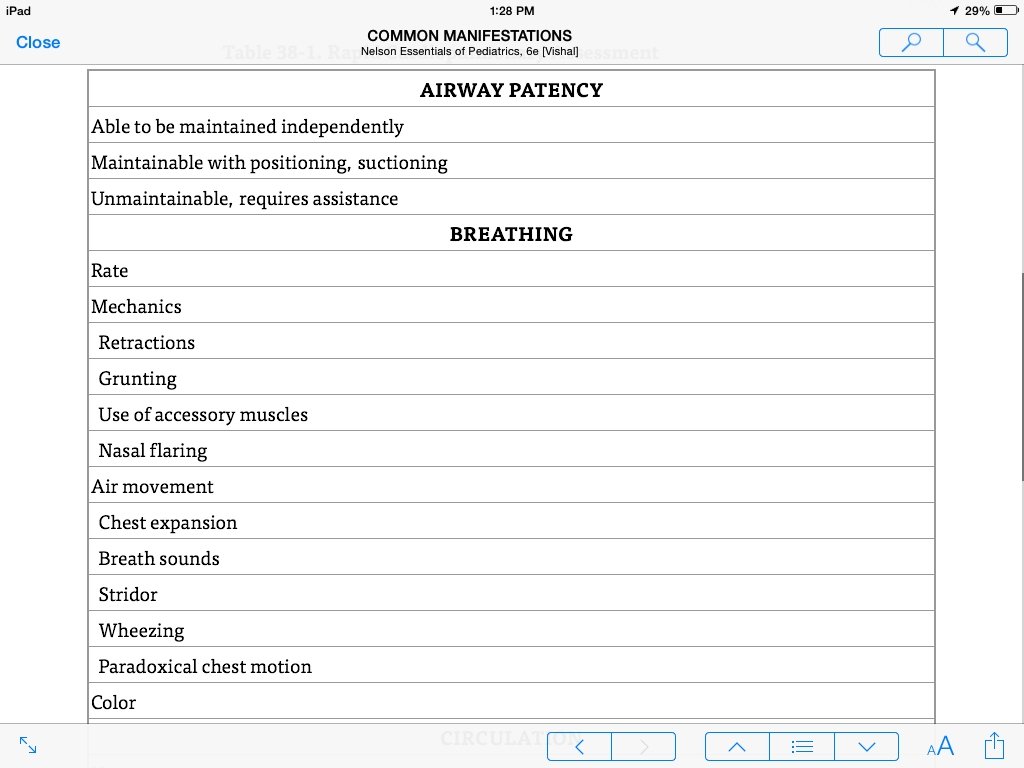 COMMON MANIFESTATIONS The physiologic responses to acute illness and injury are mechanisms that attempt to correct inadequacies of tissue oxygenation and perfusion. When initial changes, such as increasing heart and respiratory rates, fail to meet the body's needs, other manifestations of impending cardiopulmonary failure occur. Respiratory failure, the most common cause of acute deterioration in children, may result in inadequate tissue oxygenation and in respiratory acidosis. Signs and symptoms of respiratory failure (tachypnea, tachycardia, increased work of breathing, abnormal mentation) progress as tissue oxygenation becomes more inadequate.
