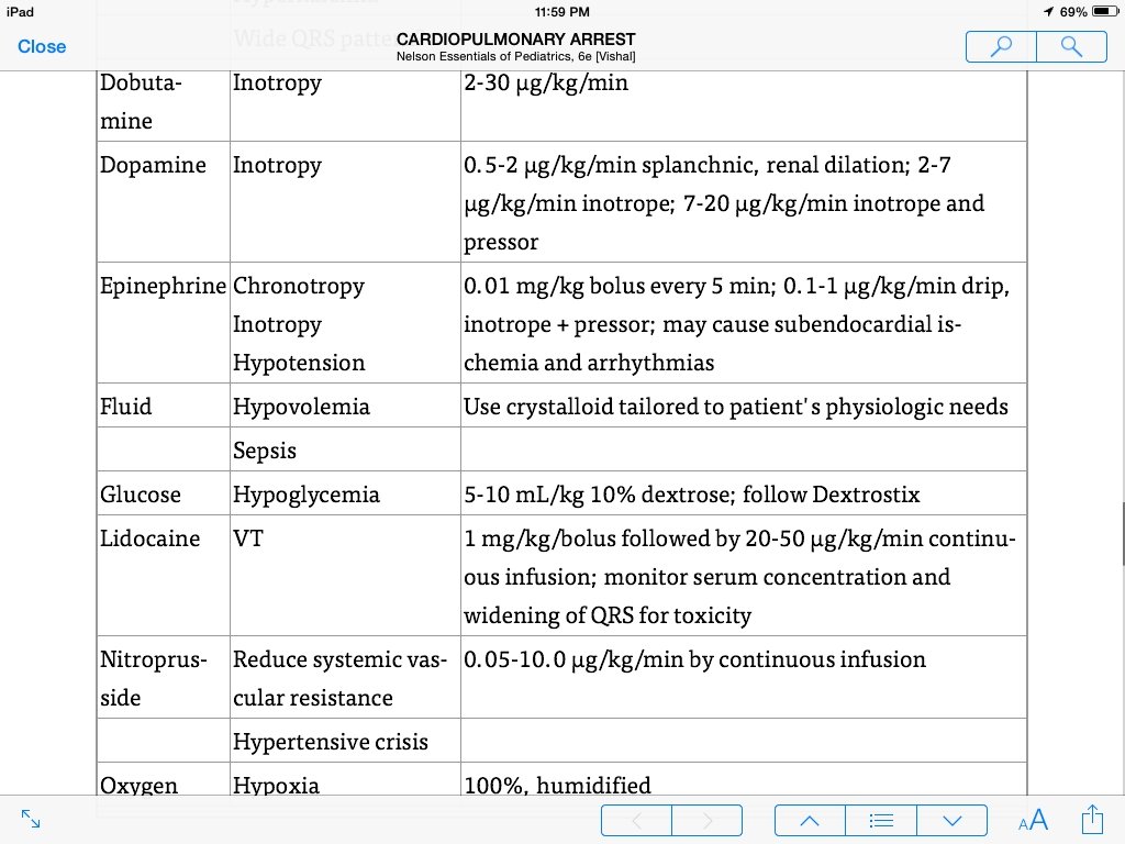 Hypoxia has a central role in most of the events leading to cardiopulmonary arrest in children. The goal in resuscitating a pediatric patient to optimize 1) cardiac output 2)tissue oxygen delivery, which may be accomplished by using artificial ventilation and chest compression and by the judicious administration of pharmacologic agents.