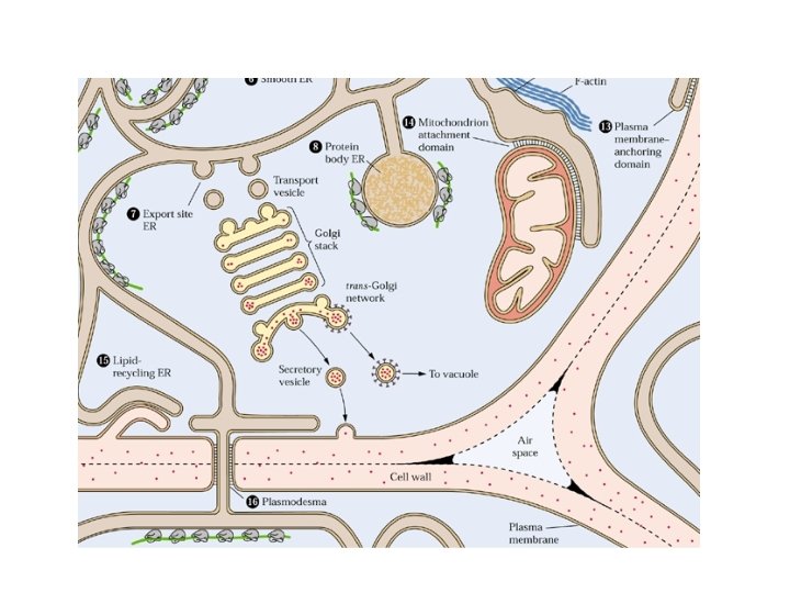 3) Many plant cells contains two different vacuole systems a. Neutral protein vacuoles (V 1) b. Acidic, lytic vacuoles (V 2)