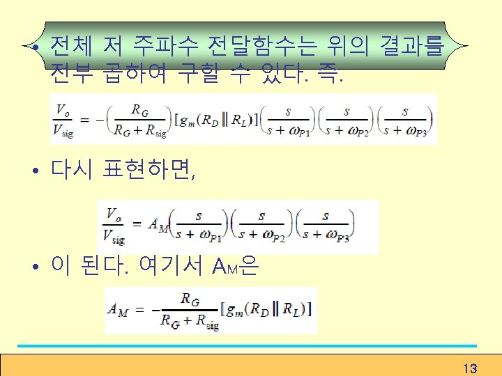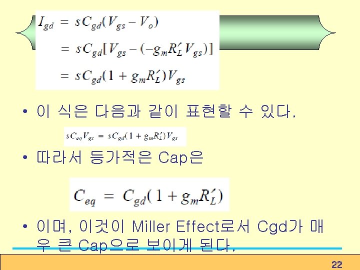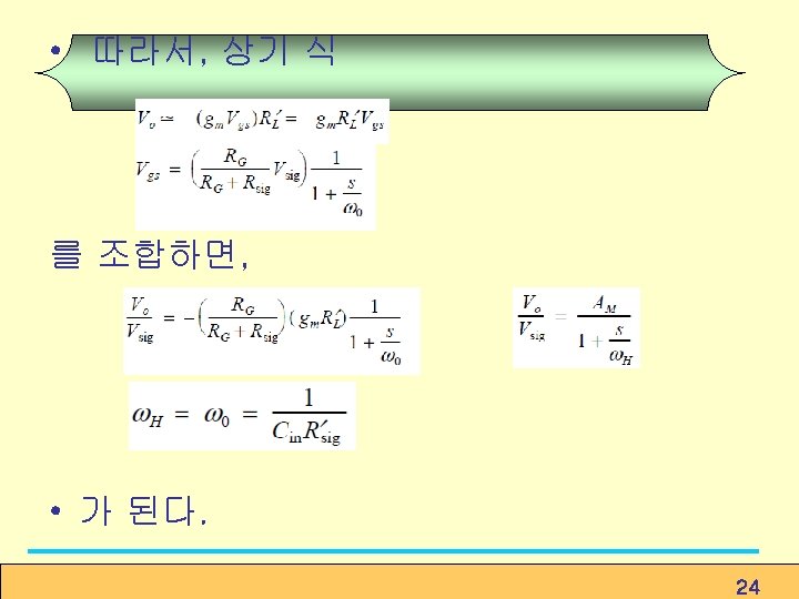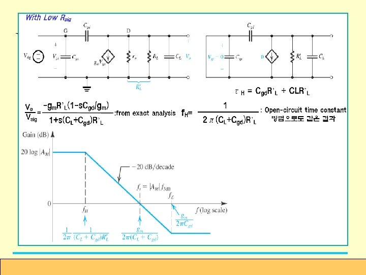 일 경우. Determine the 3 -d. B frequency f. H ① employ the open-circuit timeconstant method. ② effective time constant ③ 3 -d. B frequency Cut-off 주파수가 크다. (8. 138) ④ unity-gain frequency Figure 8. 38 The cascode circuit with the various transistor capacitances indicated. (8. 139) 35