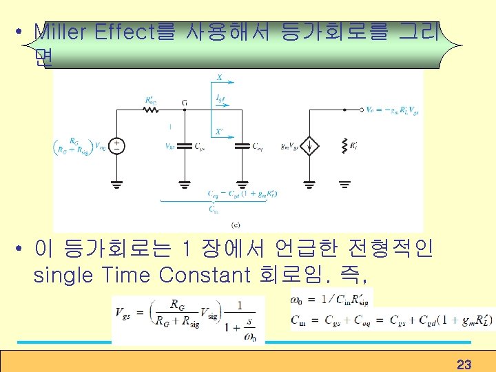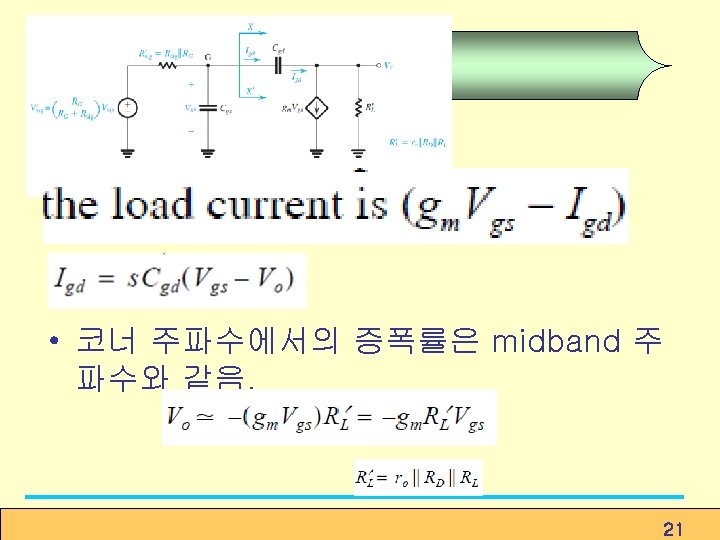 8. 10. 2 Frequency Response of the Source Follower Find zero frequency ① ② ③ Since ④ Find pole frequency ① Rgd seen by Cgd, (8. 174) ② (8. 175) ③ ④ (8. 176) Figure 8. 51 Analysis of the high-frequency response of the source follower: (a) Equivalent circuit; (b) simplified equivalent circuit; and (c) determining the resistance Rgs seen by Cgs. 36