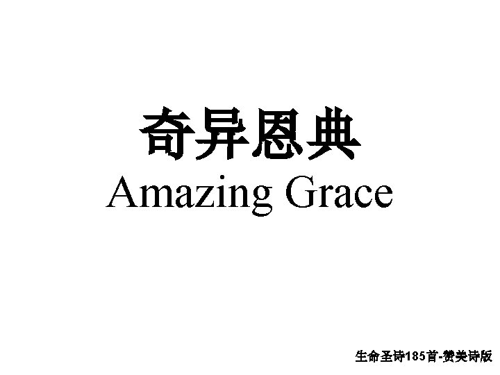 1. 奇异恩典,何等甘甜, Amazing Grace, how sweet the sound, 我罪巳得赦免; That saved a wretch like me. . 前我失丧,今被寻回, I once was lost but now am found, 瞎眼今得看见。 Was blind, but now, I see.