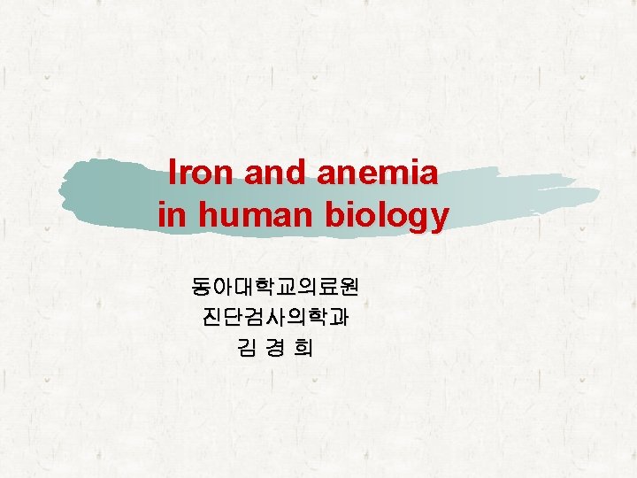 1 Anemia 2 Iron metabolism 3 Iron deficiency
