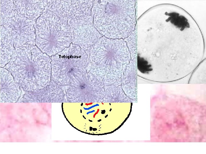 Telophase: • Chromosomes gather at opposite ends of the cell • Chromosomes become less visible by uncoiling • Nuclear envelope (membrane) begins to form