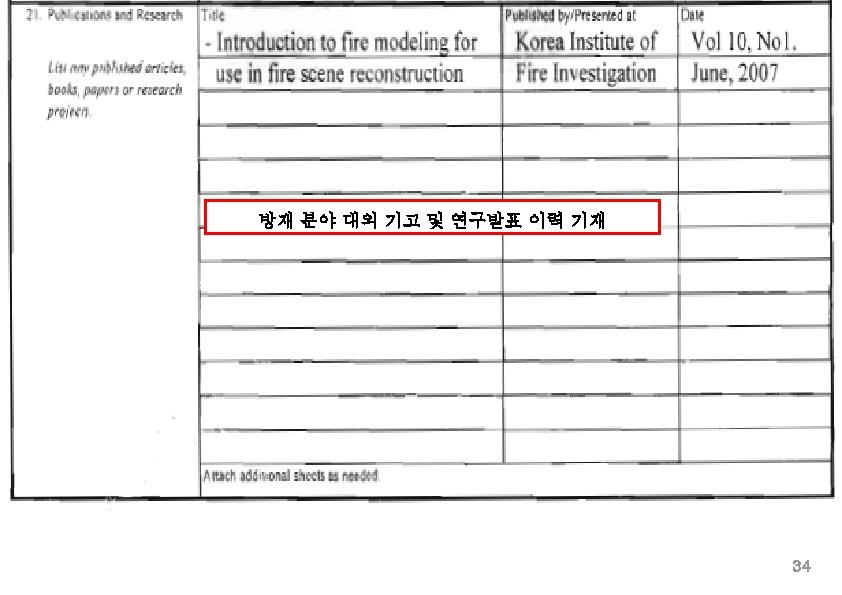 Human Resources Development Service of Korea 보유 기술자격 기재 Fire protection engineer 등 방재 분야 단체 회원 가입 현황 기재 32