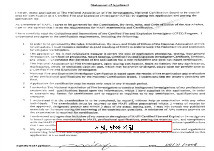 After graduation from a university, I have worked in loss control team of Samsung Electronics from Feb. 1995. I'm a team manager charging of fire protection, performing hazard inspection, loss analysis, installation of fire protection facilities. My engineers are conducting 200 inspections of fire protection facilities, hazard point at plants and buildings in a year. These inspections are used to identification, improvement of hazard and loss control analysis purposes. Especially, I have a responsibility to investigate fire cause in our company. Also, I have involved in the investigation and analysis of some fires. After completion of the investigation, I prepared an investigation report which contained the cause of the fire, fire mechanism, the damages with photos and drawings. Some of the investigations are done with special investigators from government. Also, I have a license of the fire protection engineer in Korea. I'd like to get fire investigation skill and knowledge by studying NFPA 921. I will use the knowledge to develop fire protection level of my company. I'd 36 like to take a CFEI Test.