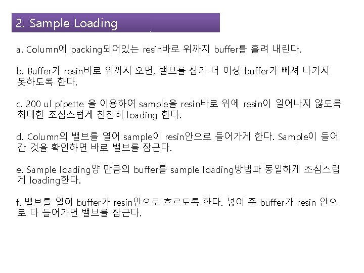 5. Sample application 1. Volume of sample for optimal separation (1 -3 % of the total volume) - Because of Diffusion effect 0. 1 % 1% 2. Concentration of sample (10 -20 mg/ml, 30 mg/ml at most. Not exceed 70 mg/ml) 3. Viscosity of sample No viscosity 4. 2 %