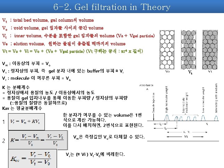 4. General practice of Gel filtration 1. Selection of buffer system 2. Packing of the column a. Selection of gel : pore size b. Selection of column (length & dimeter) c. The uniformity of packing
