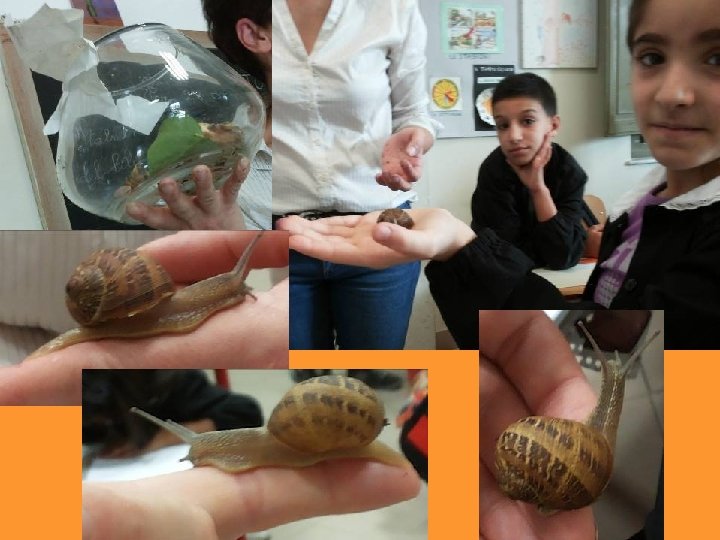 • Terminato il breve riepilogo dei concetti affrontati lo scorso anno, i bambini sono portati a riflettere sull’importanza delle piante per tutti gli esseri viventi. • Attraverso una discussione collettiva guidata, emerge l’osservazione che molti animali si nutrono delle piante. Il concetto di catena alimentare non viene espresso in questa fase: sarà “conquistato” con il progredire delle esperienze. • I bambini fanno vari esempi di animali che mangiano i vegetali: fra questi alcuni nominano le chiocciole Un bambino propone di portare a scuola una chiocciola. • In seguito a questa attività, Matteo porta a scuola alcune chiocciole in un barattolo con un po’ d’insalata.