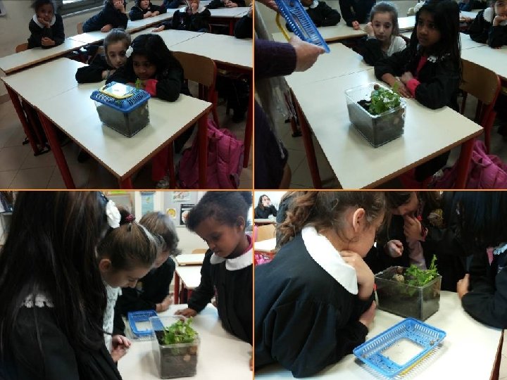 Testo collettivo Oggi abbiamo osservato la casetta delle chiocciole per vedere cosa è cambiato. Abbiamo visto che le chiocciole hanno mangiato quasi tutte le piantine. Una delle piantine rimaste è cresciuta, ma le sue foglie sono state mangiucchiate. Le foglie di un’altra piantina hanno alcuni buchini rotondi. Più in là c’è una piantina che sta germogliando. Una delle chiocciole è morta e dentro il guscio non si vede più il corpo: ci sono solo un po’ di foglie con dei puntolini bianchi. Le chiocciole dormono alle pareti e rimangono dentro il loro guscio: forse non hanno abbastanza foglie da mangiare. Abbiamo scoperto che nella terra vivono anche altri animaletti: una formica un moscerino, un verme… Prossimamente guarderemo con più attenzione.