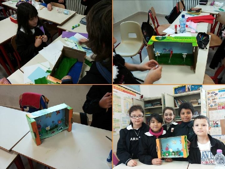 Racconto come abbiamo costruito la casa delle chiocciole Venerdì la maestra ha portato la terra e tante piantine e un sasso e Giada aveva portato la vaschetta. E poi Elisa ci ha messo la terra bagnata e dopo è arrivata Alessandra: doveva mettere una piantina ma doveva fare un buco quindi la maestra le ha dato un pennarello e Alessandra ha fatto il buco e ci ha messo la piantina. Poi la maestra ha chiamato Marwan ha fatto un buco col pennarello e ci ha messo la piantina, Marwan è andato a sedere. E è arrivato Amin ha fatto la stessa cosa: ha fatto un buco e ci ha messo dentro la piantina, mentre io ho fatto le foto a tutti e alla fine la maestra si è ricordata del sasso e ha chiamato Matteo perché l’aveva detto lui di metterci il sasso: allora Matteo l’ha messo. Alla fine la maestra ci ha messo la chiocciola: dopo un po’ la chiocciola era salita sul suo tetto. (Minoli)