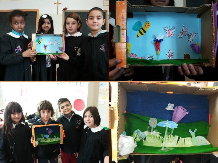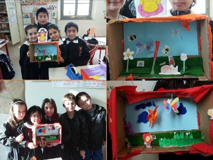 • Una volta individuati i nomi degli animaletti trovati e osservati nella terra, viene fatta una breve ricerca per trovare notizie su di loro. • Le informazioni trovate vengono lette, discusse, approfondite con una conversazione collettiva, dopodiché viene realizzato un breve testo condiviso per ciascuno di essi, anche alla luce di quanto era stato osservato dal vivo. • I bambini sono rimasti molto colpiti dalla quantità di animaletti trovati nella terra della “casetta” e hanno fatto molte ipotesi sulla presenza “insospettata” di animali nel terreno di un prato o di un bosco. • A questo proposito vengono invitati a creare un piccolo diorama che rappresenti l’ambiente del prato, documentandosi anche su Internet (collegamento interdisciplinare con tecnologia).