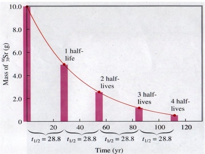 26 • The half life of 14 C is 5, 730 years. • If a sample originally contained 100 g, how much would be left after 11, 460 years? 50 g 25 g