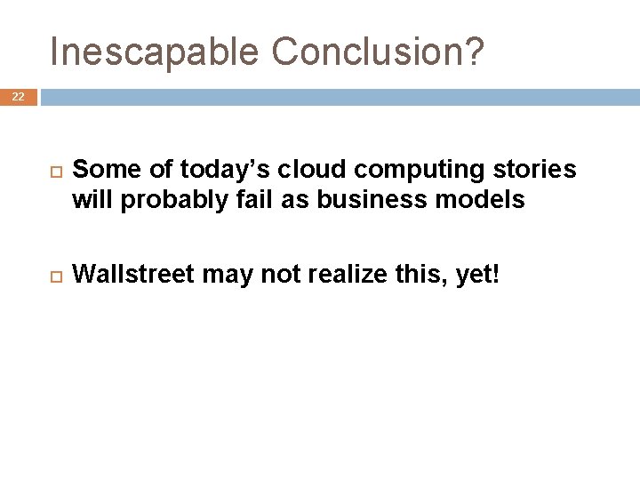Inescapable Conclusion? 22 Some of today’s cloud computing stories will probably fail as business models Wallstreet may not realize this, yet!