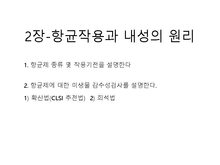 Ⅱ. 항생제 발견의 역사 1. Discovery of antimicrobial agents - Penicillin (1928), Streptomycin (1944), Chloramphenicol (1947), Polymyxin (1947), Chlortetracycline (1948), Cephalosporin (1948), Oxytetracycline(1950), Erythromycin (1952), Cycloserine (1955), Amphotericin (1956), Vancomycin (1956), Rifamycin (1957), Kanamycin (1957), Fusidic acid (1960), Gentamicin (1963), Tobramycin (1968) 2. War-History: Human vs. Bacteria - 1941 : Penicillin이 널리 사용 - 1948 : Penicillinase-producing bacteria 출현 beta-lactamase stable penicillin - 1961 : MRSA(methicillin resistant S. aureus), 영국 - 1983 : ESBL(Extended spectrum β-lactamase), 독일 - 1988 : VRE(Vancomycin resistant enterococci), 프랑스 - 1997 : VISA(Vancomycin intermediate S. aureus), 일본 - 2002, 2004, 2005 : VRSA(Vancomycin Resistant S. aureus), 미국