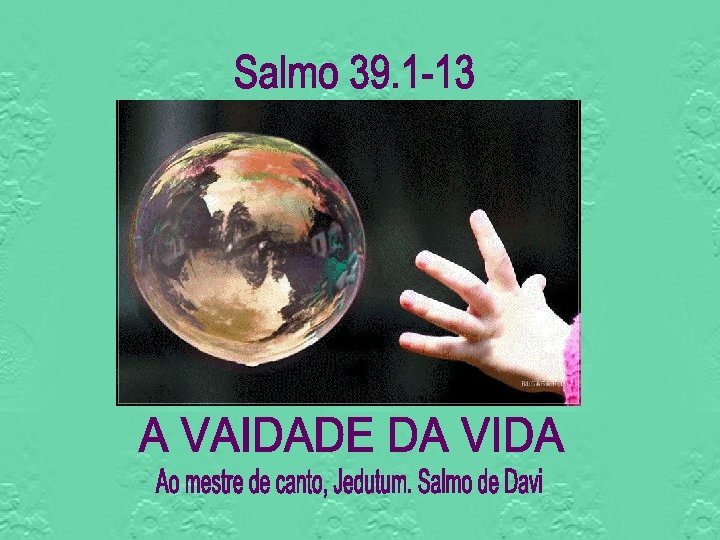 4 - Dá-me a conhecer, SENHOR, o meu fim e qual a soma dos meus dias, para que eu reconheça a minha fragilidade. 5 - Deste aos meus dias o comprimento de alguns palmos; à tua presença, o prazo da minha vida é nada. Na verdade, todo homem, por mais firme que esteja, é pura vaidade. 6 - Com efeito, passa o homem como uma sombra; em vão se inquieta; amontoa tesouros e não sabe quem os levará.