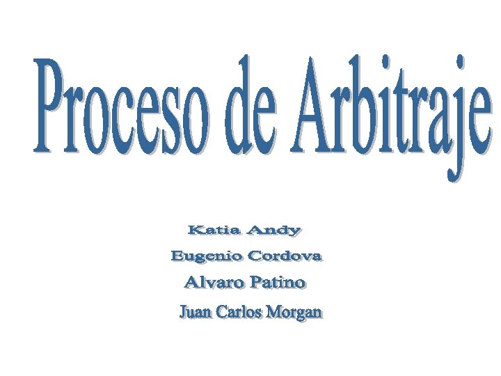 • • • Entrega del expediente al Tribunal Arbitral Normas aplicables al procedimiento Normas jurídicas aplicables al fondo Acta de Misión; calendario de procedimiento Nuevas demandas Instrucción de la causa Audiencias Cierre de la instrucción Medidas cautelares y provisionales