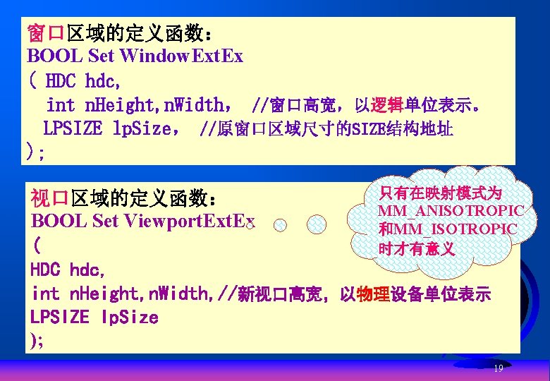 消息处理函数 long WINAPI Wnd. Proc(HWND h. Wnd, UINT i. Message, UINT w. Param, LONG l. Param) { HDC h. DC; //定义指向设备的句柄 HBRUSH h. Brush; //定义指向画刷的句柄 HPEN h. Pen; //定义指向画笔的句柄 PAINTSTRUCT Pt. Str; //定义指向包含绘图信息的结构体变量 switch(i. Message) //处理消息 { case WM_PAINT: //处理绘图消息 h. DC=Begin. Paint(h. Wnd, &Pt. Str); Set. Map. Mode(h. DC, MM_ANISOTROPIC); //设置映像模式 h. Pen=(HPEN)Get. Stock. Object(BLACK_PEN); //黑色画笔 h. Brush=(HBRUSH)Get. Stock. Object(DKGRAY_BRUSH); //深灰色刷 Select. Object(h. DC, h. Brush); //选择画刷 40