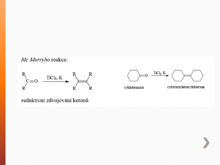 9) Ozonolýza 10) Radikálové adice anti-Markovnikovovův produkt 11) Adice karbenů stereospecifická !! jiný zdroj karbenů