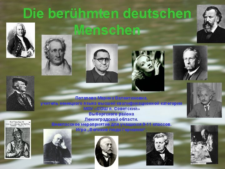 VIELEN DANK! • Die berühmten Persönlichkeiten Deutschlands haben besonders zur Entwicklung der Menschheit beigetragen. • Ihre Namen sind in der ganzen Welt bekannt.