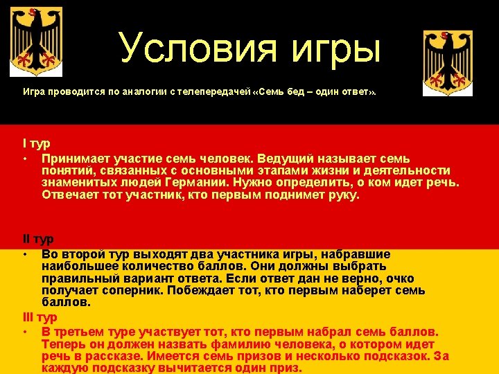 III тур • • • Das ist ein berühmter deutscher Komponist. Er ist 1756 in Österreich in der Stadt Salzburg geboren. Sein Vater war Kapellmeister. Mit 5 Jahren komponierte er schon seine eigene Musik. Mit 6 Jahren fuhr er mit seiner Schwester und dem Vater durch Europa und gab Konzerte. Das Publikum war von den Wunderkindern begeistert. Mit 15 Jahren fuhr er mit dem Vater nach Italien, um die italienische Musik zu studieren. Der Komponist träumte, eine deutsche Oper zu komponieren. Zu den ersten deutschen Nationalopern gehört seine Oper „Zauberflöte“. Er starb 1791. Es gibt eine Meinung, dass er von Salieri (einem italienischen Komponist) vergiftet wurde.
