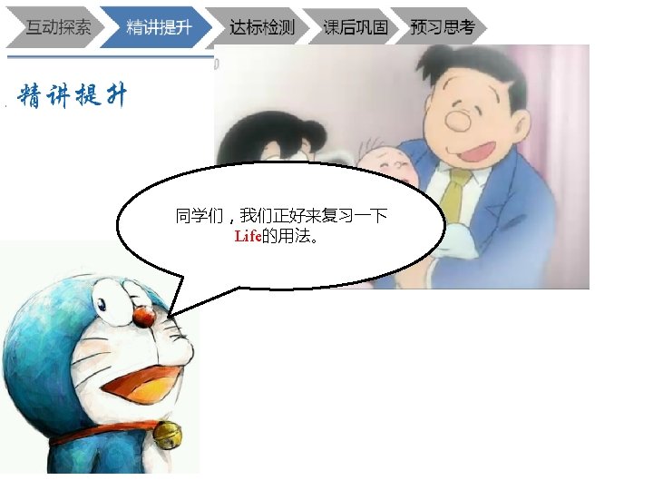 生活 生命(力) 性命 1. He spends very little money in his daily life. . 2. live/lead a (happy/poor/interesting ) life U. C. Animals and plants have life. . U. A doctor’s job is to save people’s lives C.