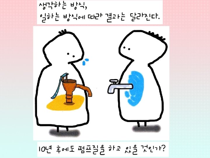 89. Do not spoil what you have by desiring what you have not; but remember that what you now have was once among the things you only hoped for. (Epicurus) 못 가진 것에 대한 욕망으로 가진 것을 망치지 말라. 하지만 지금 가진 것 이 한때는 바라기만 했던 것 중 하나였다는 것도 기억하라. (에피쿠로스) 90. Among those whom I like or admire, I can find no common denominator, but among those whom I love, I can: all of them make me laugh. (W. H. Auden) (오든) 내가 좋아하거나 존경하는 사람들의 공통분모는 찾을 수 없지만, 내가 사랑하는 사람들의 공통된 특징은 찾을 수 있다. 그들은 나를 웃게 만든다. 91. What if nothing exists and we're all in somebody's dream? Or what's worse, what if only that fat guy in the third row exists? (Woody Allen) 아무것도 존재하지 않고, 세상이 모두 꿈속의 현실이라면 어떻겠는가? 아니면 세상에나, 저기 셋째 줄에 앉은 뚱뚱한 남자만 존재한다면 어떻겠는가? (우디 알렌) ☎ If you don't walk today, you will have to run tomorrow. 오늘 걷지 않으면, 내일은 뛰어야 할 것이다.
