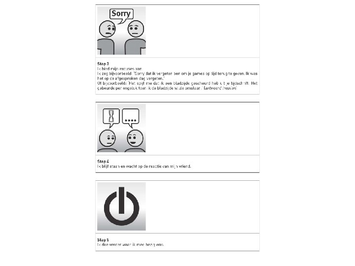 5. 2 Sociale vaardigheden versterken • • kind zal anders blijven eenvoudige sociale gedragingen aanleren sociale situatiescripts sociale leerverhalen