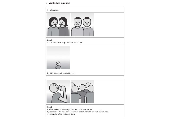 4. 2 Duidelijkheid in tijd, activiteiten en ruimte • stap 1: zeg het met woorden • stap 2: schrijf het op • stap 3: visuele communicatie: zeg het met beelden