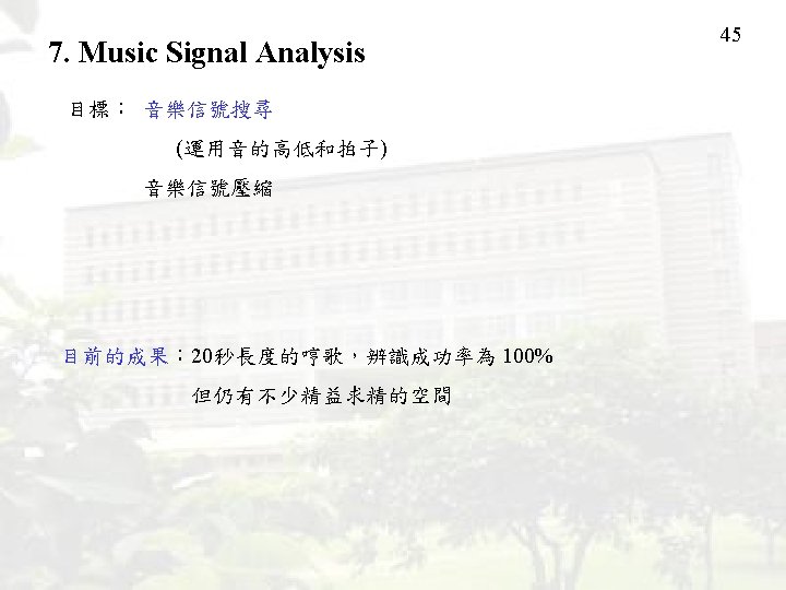 7. Music Signal Analysis 聲音檔:http: //djj. ee. ntu. edu. tw/air. mp 3 time-frequency analysis 44