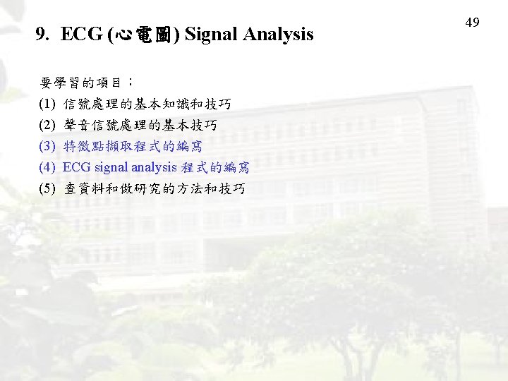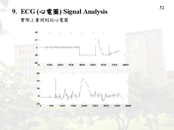9. ECG (心電圖) Signal Analysis 典型心電圖 R R P T QS P QS T 50