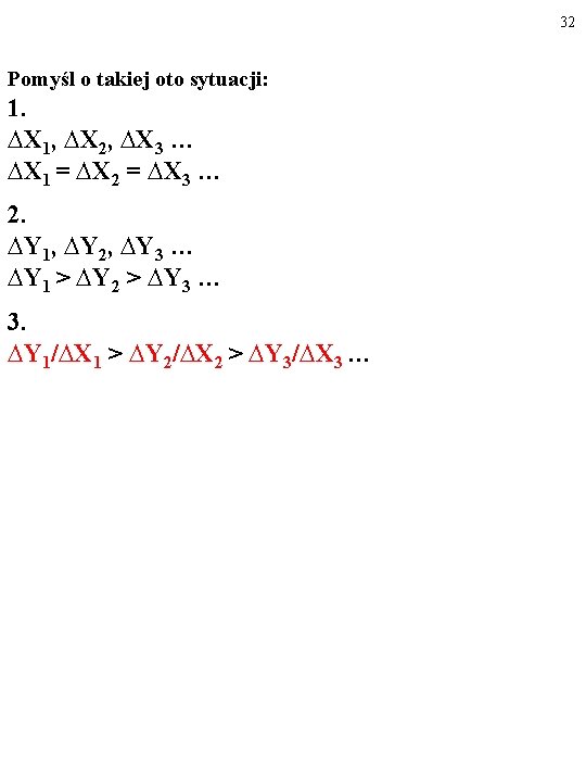 31 KRAŃCOWA STOPA SUBSTYTUCJI dobra Y dobrem X, ∆Y 1/∆X 1, jest to stosunek porcji dobra Y, z której konsument musi zrezygnować, aby niewielka dodatkowa porcja dobra X nie zmieniła oceny jego koszyka, do tej właśnie porcji dobra X.