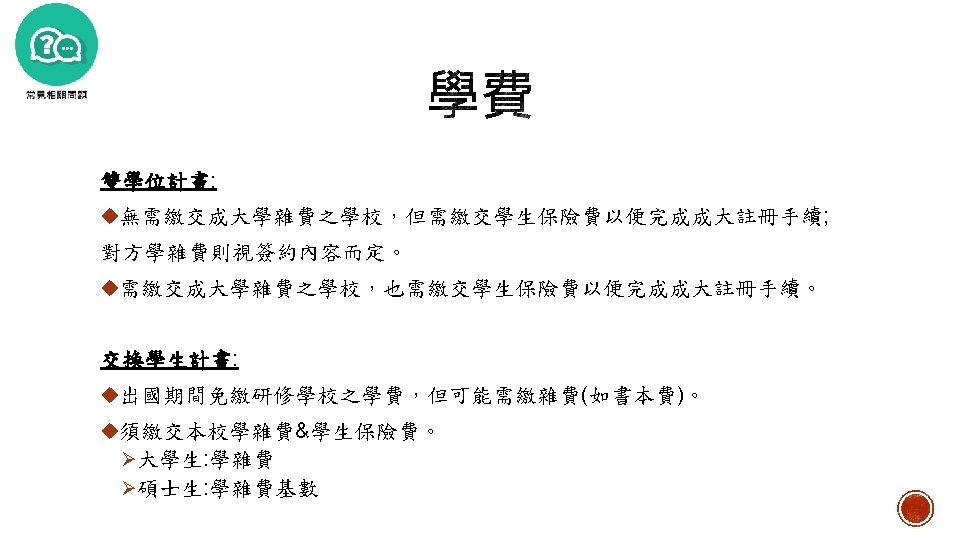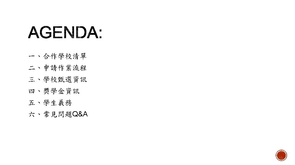 § 交換學生計畫: 6. 波蘭卡托維茲經濟大學 (University of Economics in Katowice) 7. 荷蘭格羅寧根大學 (Economics and Business, University of Groningen) 8. 日本大阪大學 (The Graduate School of Economics, Osaka University) 9. 中國南開大學商學院 (Business School of Nankai University) 10. 中國北京交通大學 (Beijing Jiaotong University) 11. 香港城市大學 (City University of Hong Kong) 12. 香港理 大學 (The Hong Kong Polytechnic University)