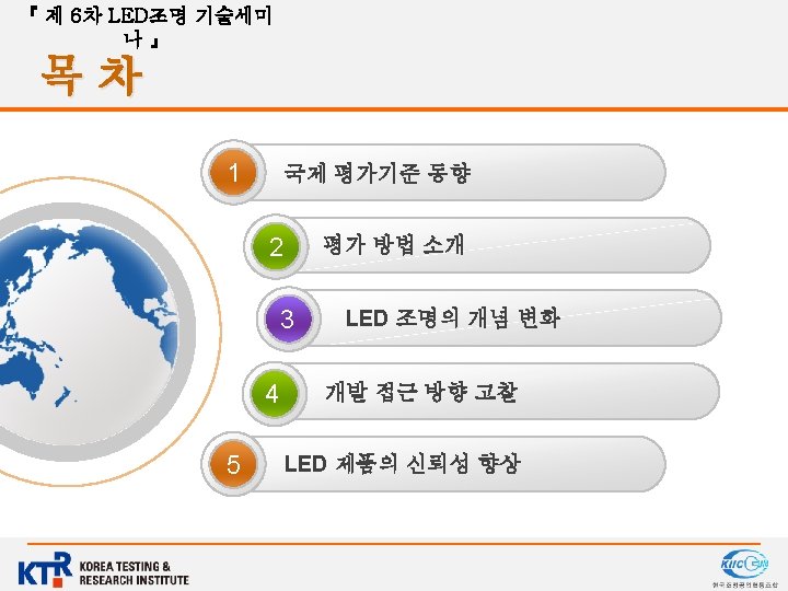 1. LED 조명의 국제 동향 및 평가 방법 소개 • LED Standards Activities • SSL Standards Status • IESNA LM-79 • IESNA LM-80 • ANSI C 78. 377 A