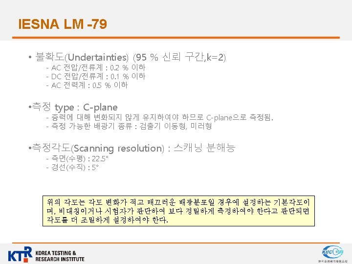 IESNA LM -79 MAX. 총면적 3%이하 구형 : 30 cm, 선형, 2/3 MAX. 1/3