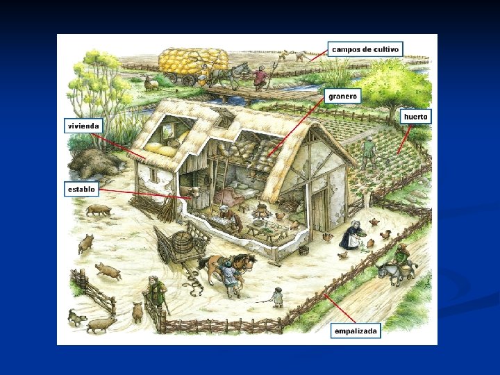 1. 2 La ruralización de Occidente n La desaparición del Imperio romano impuso un clima de inseguridad en Occidente. n La inseguridad en las comunicaciones fue la causa de la desaparición del actividad comercial, la población abandonó las ciudades y buscó refugio en las grandes explotaciones agrarias. n Este empobrecimiento general paralizó las obras públicas, la producción de cultura, y la lectura y escritura quedó reducida a grupos de clérigos y monjes.