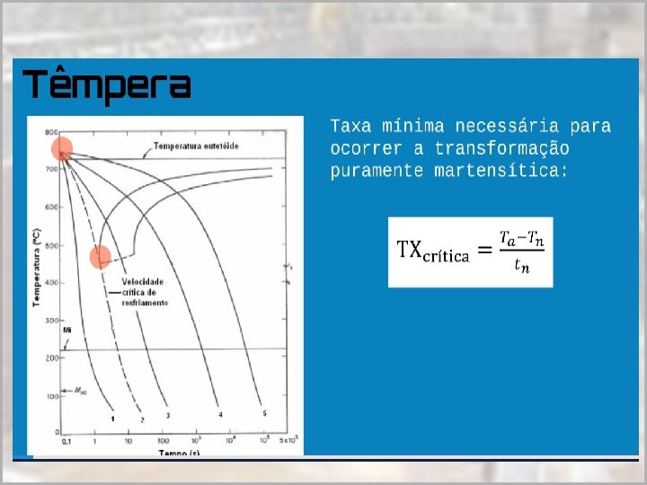 A têmpera e os meios de resfriamento Processo de têmpera envolve dois processos diferentes, com mútua interação entre eles: • DIN MICA DA TAXA DE EXTRAÇÃO DE CALOR Constante mudança do fluxo de calor dentro da peça e da transferência de calor na superfície • CINÉTICA DA TRANSFORMAÇÃO DE ESTRUTURAS Mostrada para cada composição de aço pelo seu respectivo diagrama CCT. 6