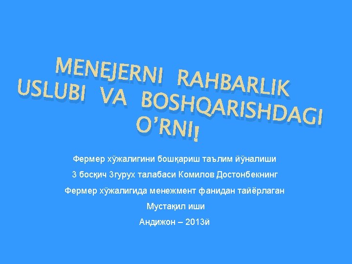 1 Menejer va rahbarlik uslubi tushunchasi 2 Rahbarlik