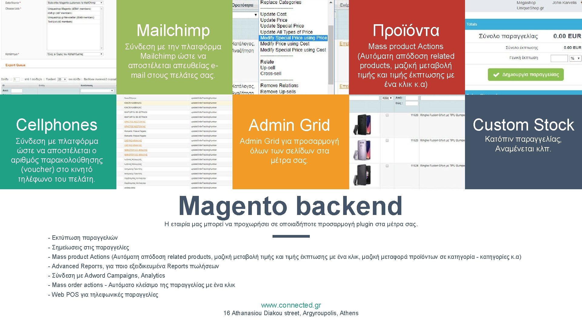 Portfolio Ενδεικτικά ηλεκτρονικά καταστήματα store. i-system. gr happy 2 shop. gr uniqueshop. gr katsifas. gr carousel. gr toponsports. gr moto-discovery. com www. connected. gr v 16 Athanasiou Diakou street, Argyroupolis, Athens 3