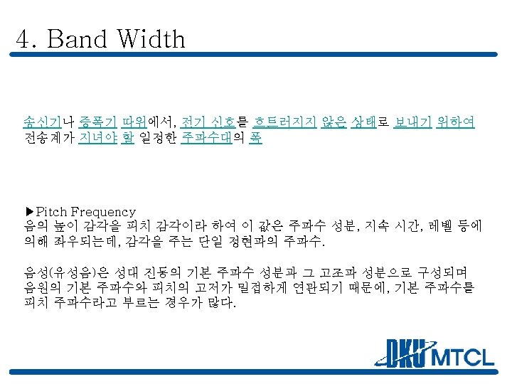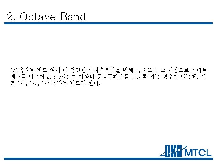 목 차 1. Noise 의 종류 1. (1) White Noise 1. (2) Pink Noise 1. (3) 그 외의 Noise 2. Octave Band 3. Narrow Band & Wide Band 4. Band Width