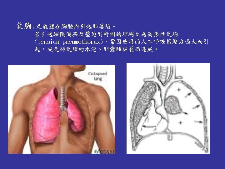 Complication of Pneumothorax • • • Tension pneumothorax Re-expansion pulmonary edema Persistent air leak Hemothorax (less than 5%) Pneumomediastinum